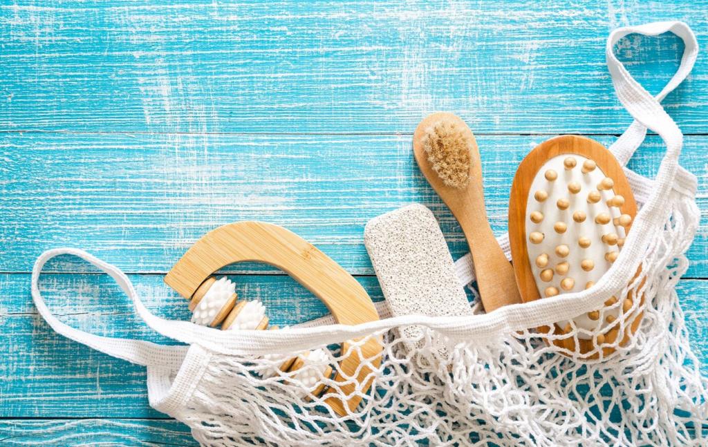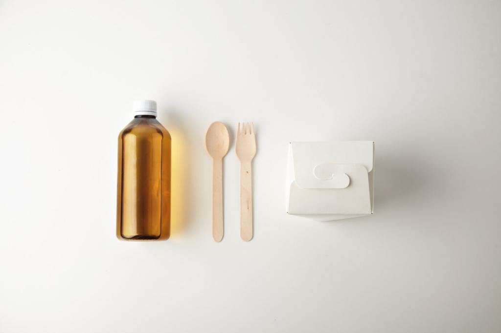 Beeswax wraps and washable cotton bowl covers breathe gently, keeping bread crust lively and cheese happy. Wipe with cool water, refresh occasionally, and enjoy the ritual. Want our DIY wrap recipe and re-waxing tutorial? Subscribe, and tell us which shapes fit your kitchen best.